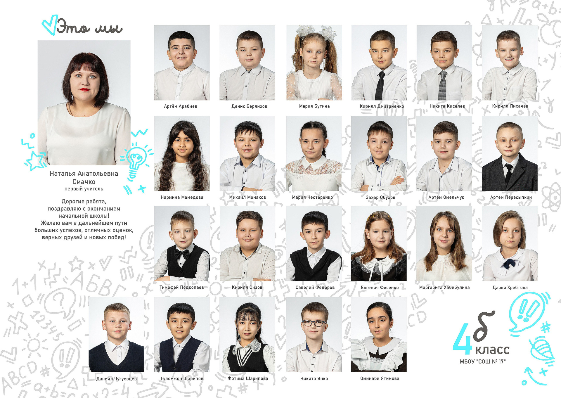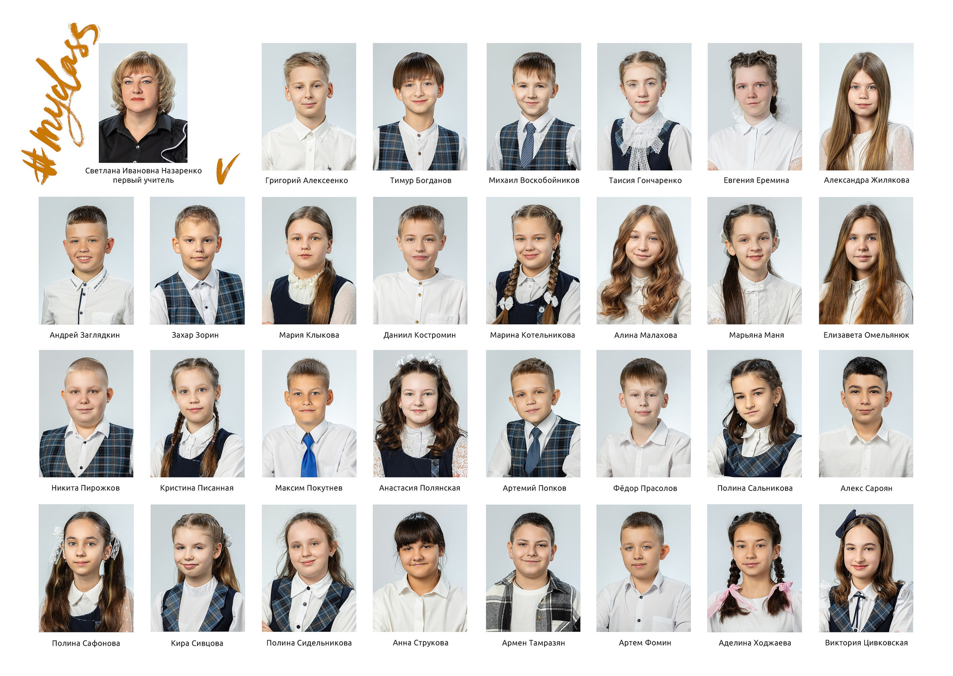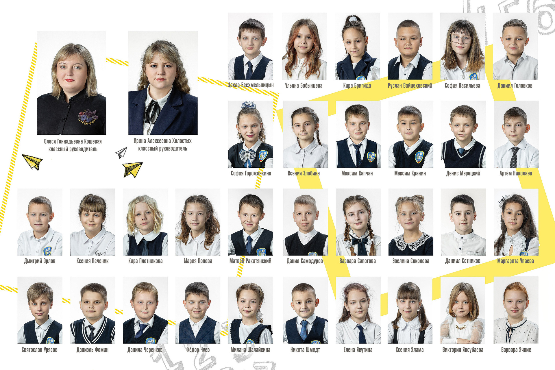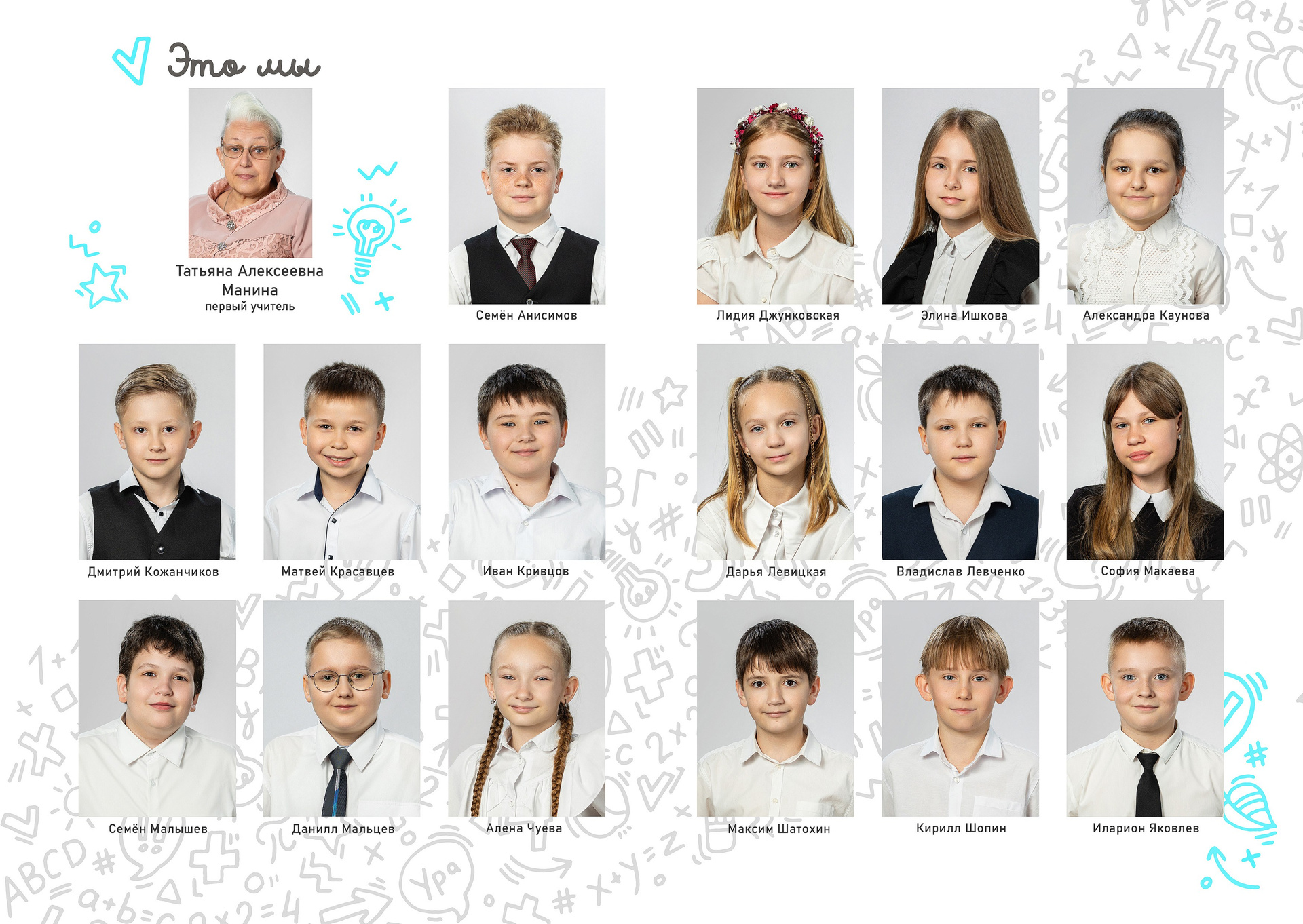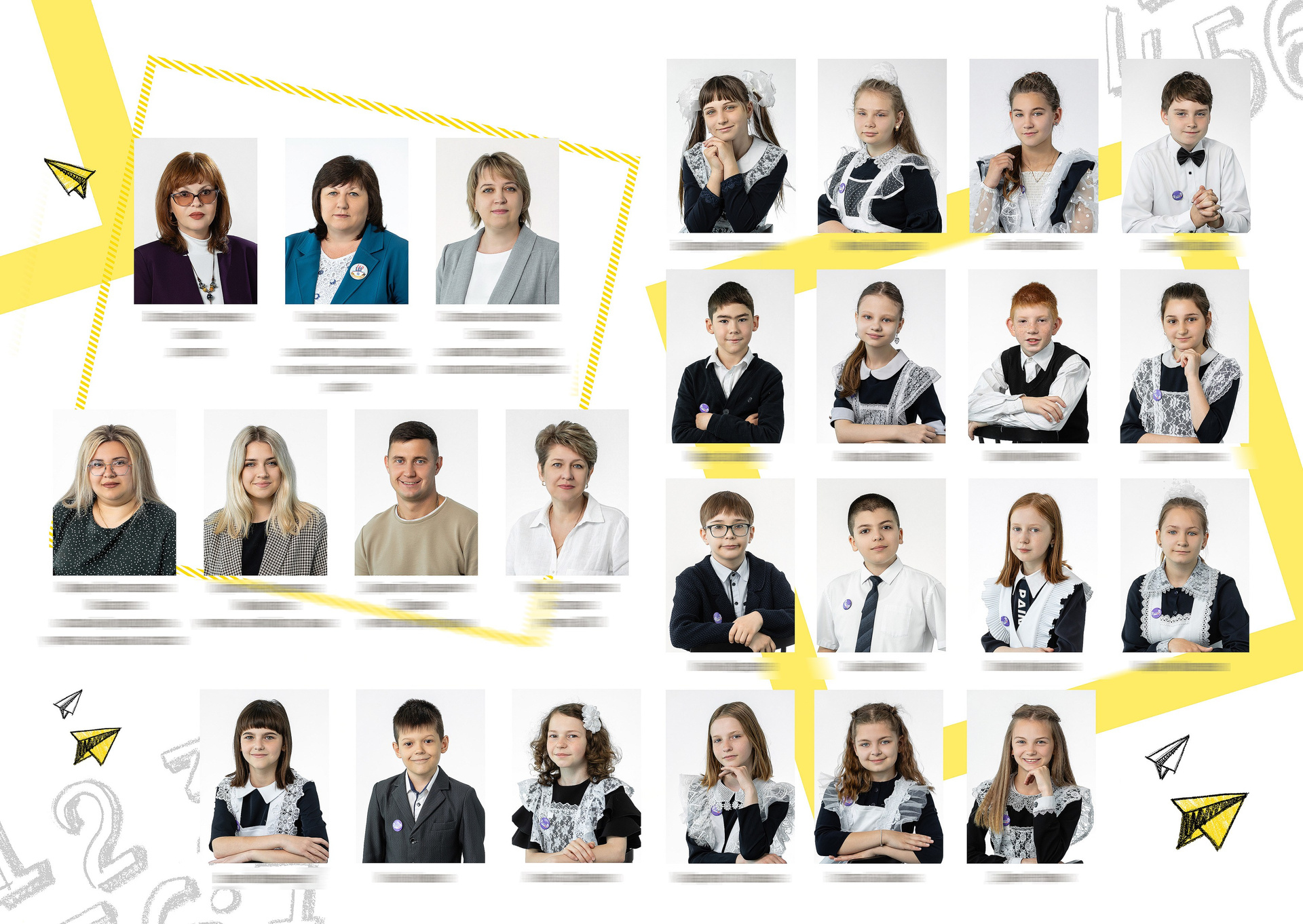 - 2-й разворот: виньетка (портреты всех детей и учителя)