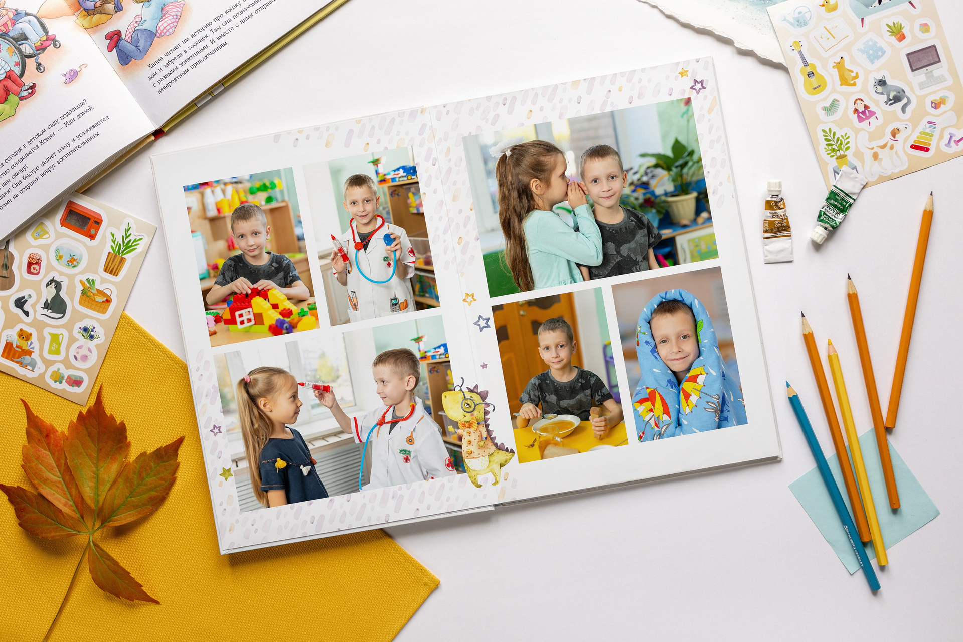 — Каждый персональный разворот (2 страницы с фотографиями вашего ребенка) +500 руб к стоимости альбома