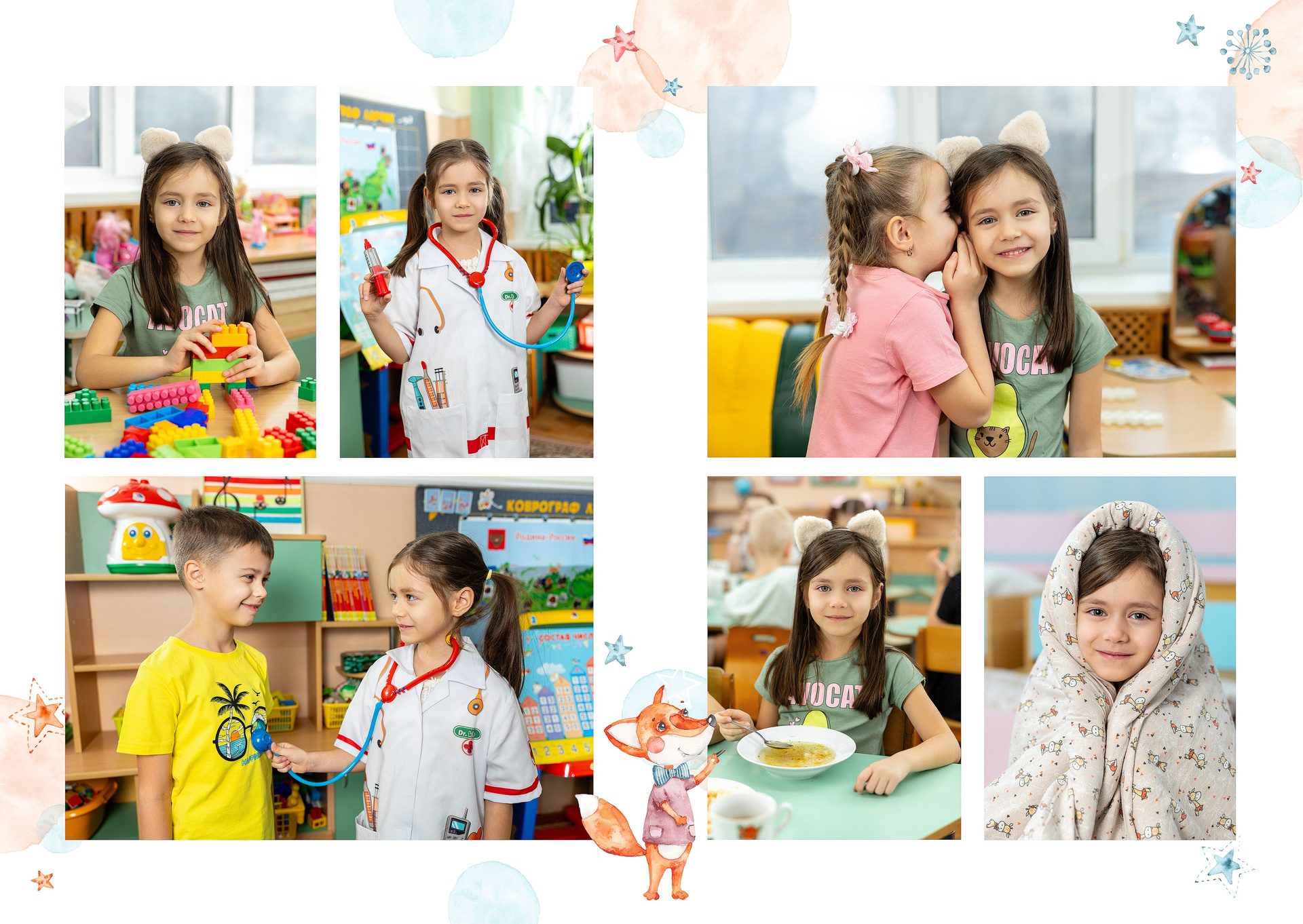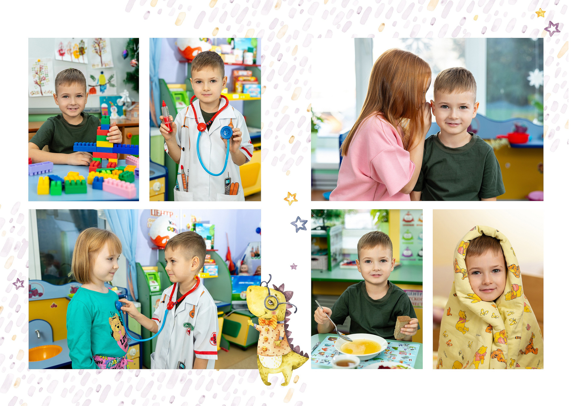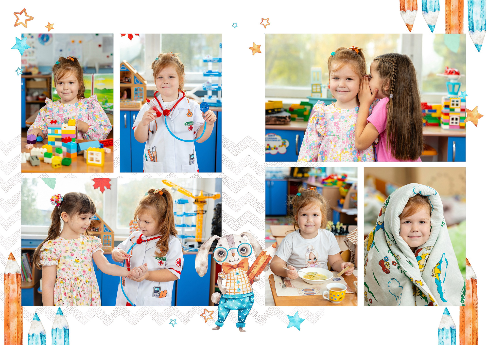 — 2-й разворот: фотографии на занятиях и играх в группе