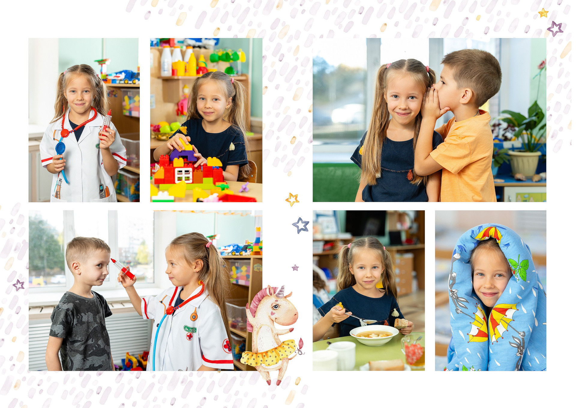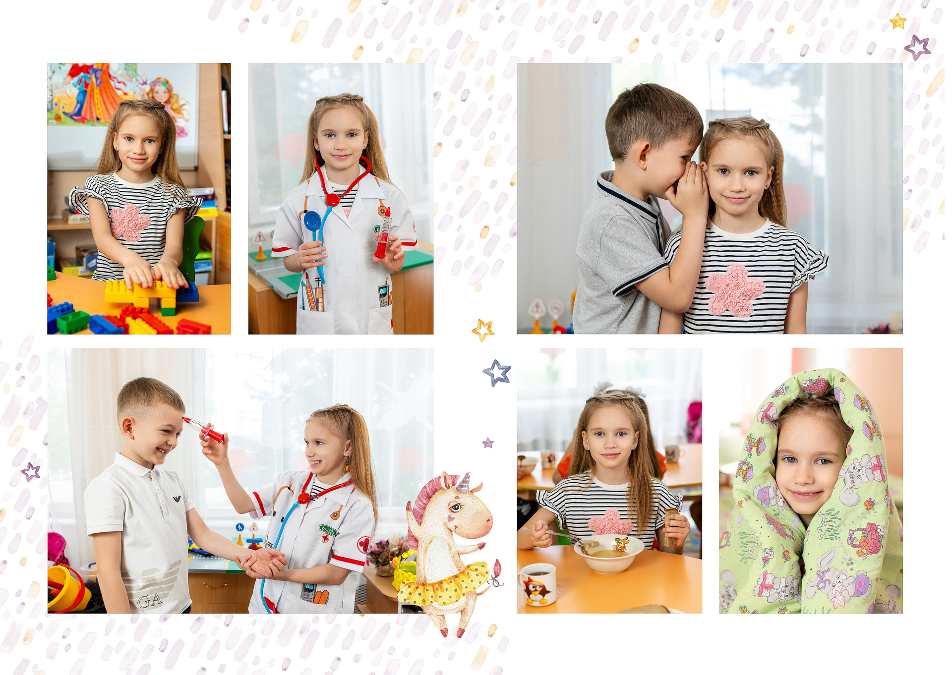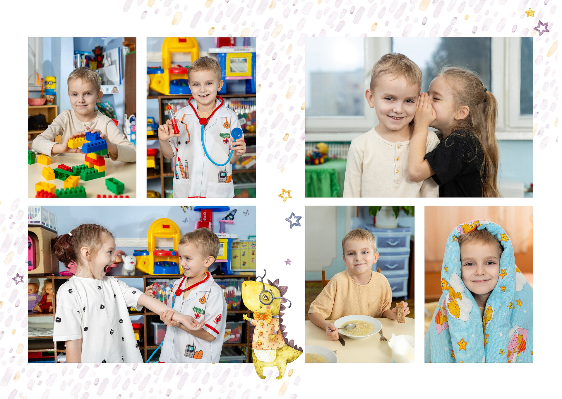 — 2-й разворот: фотографии на занятиях и играх в группе