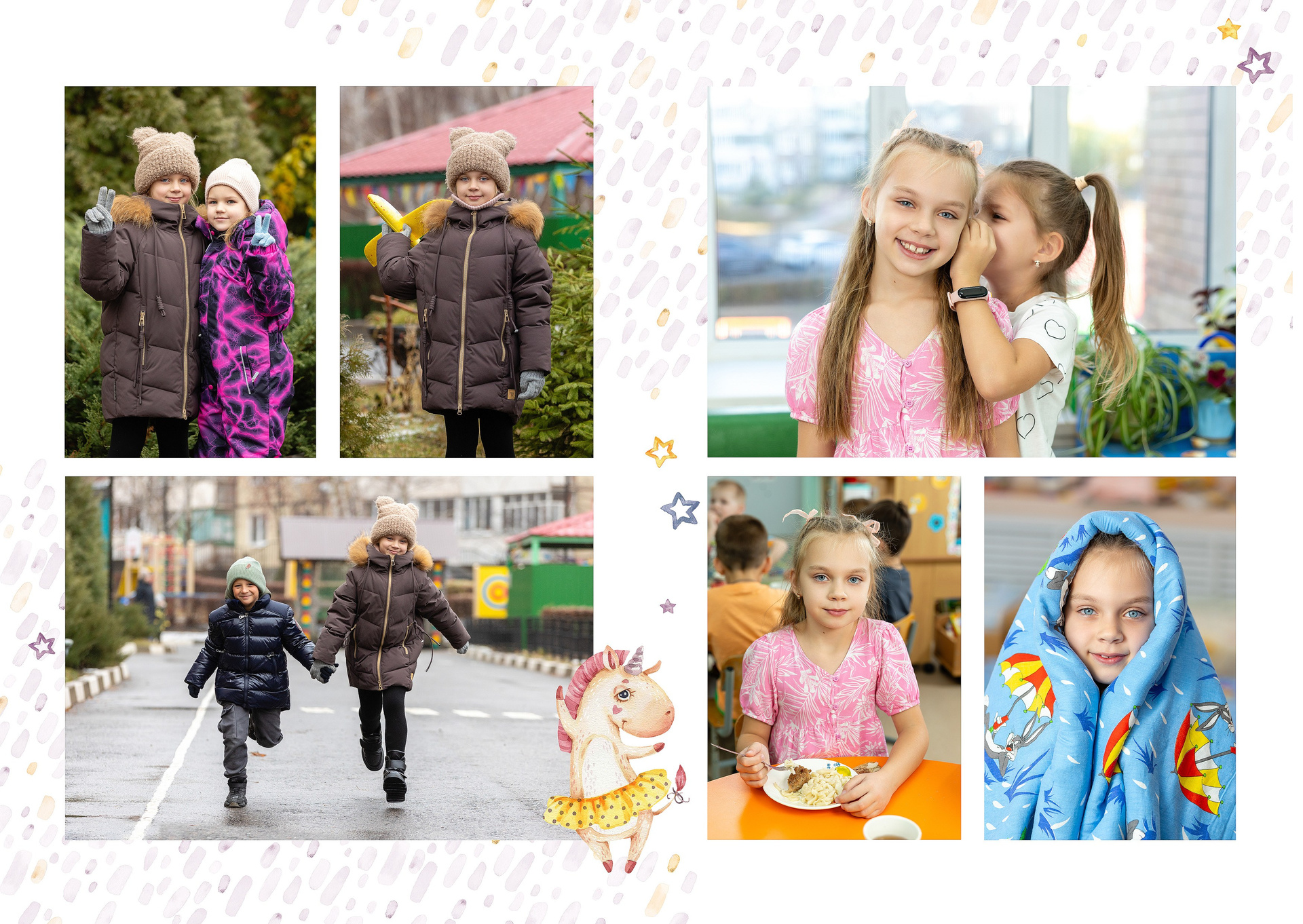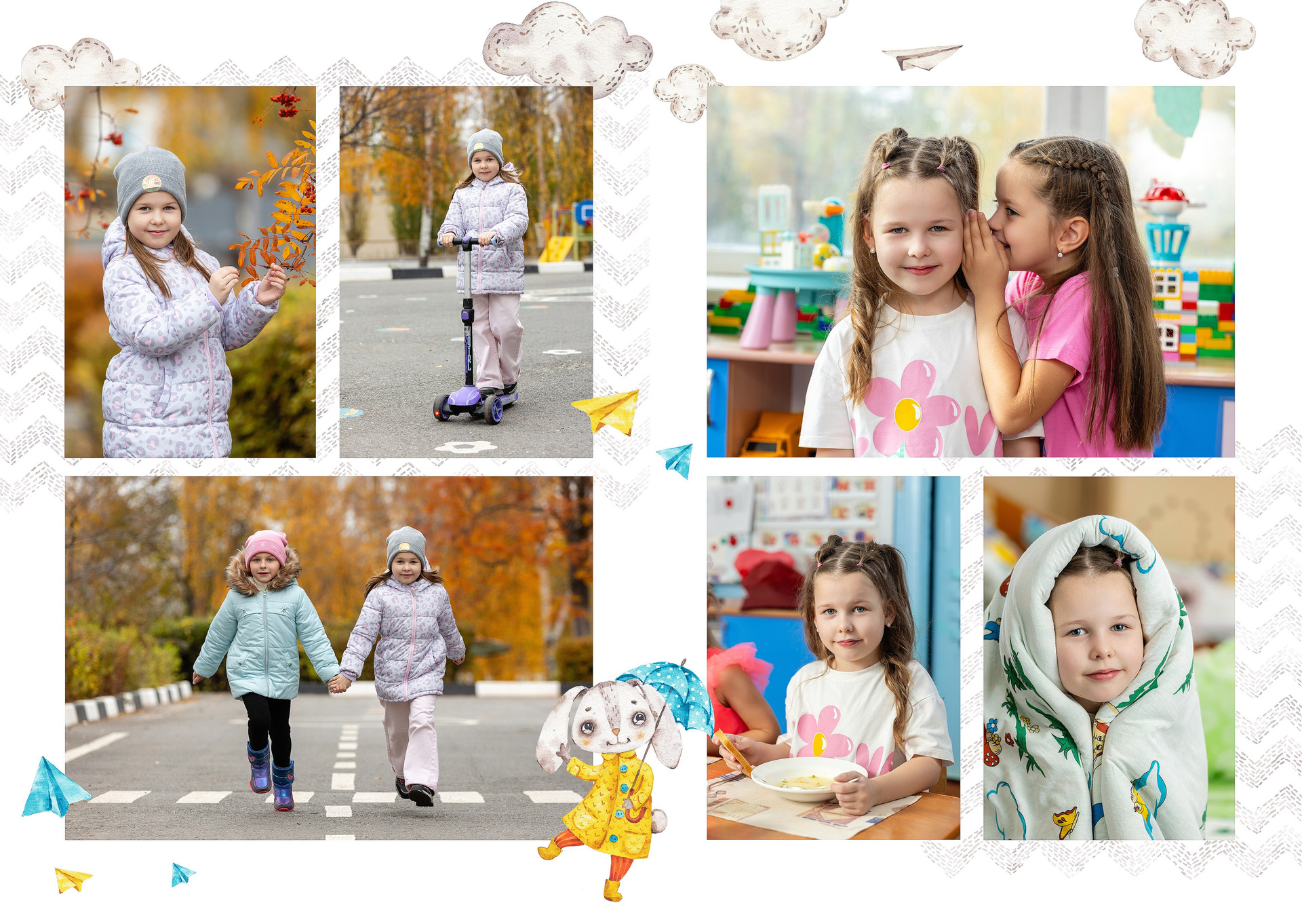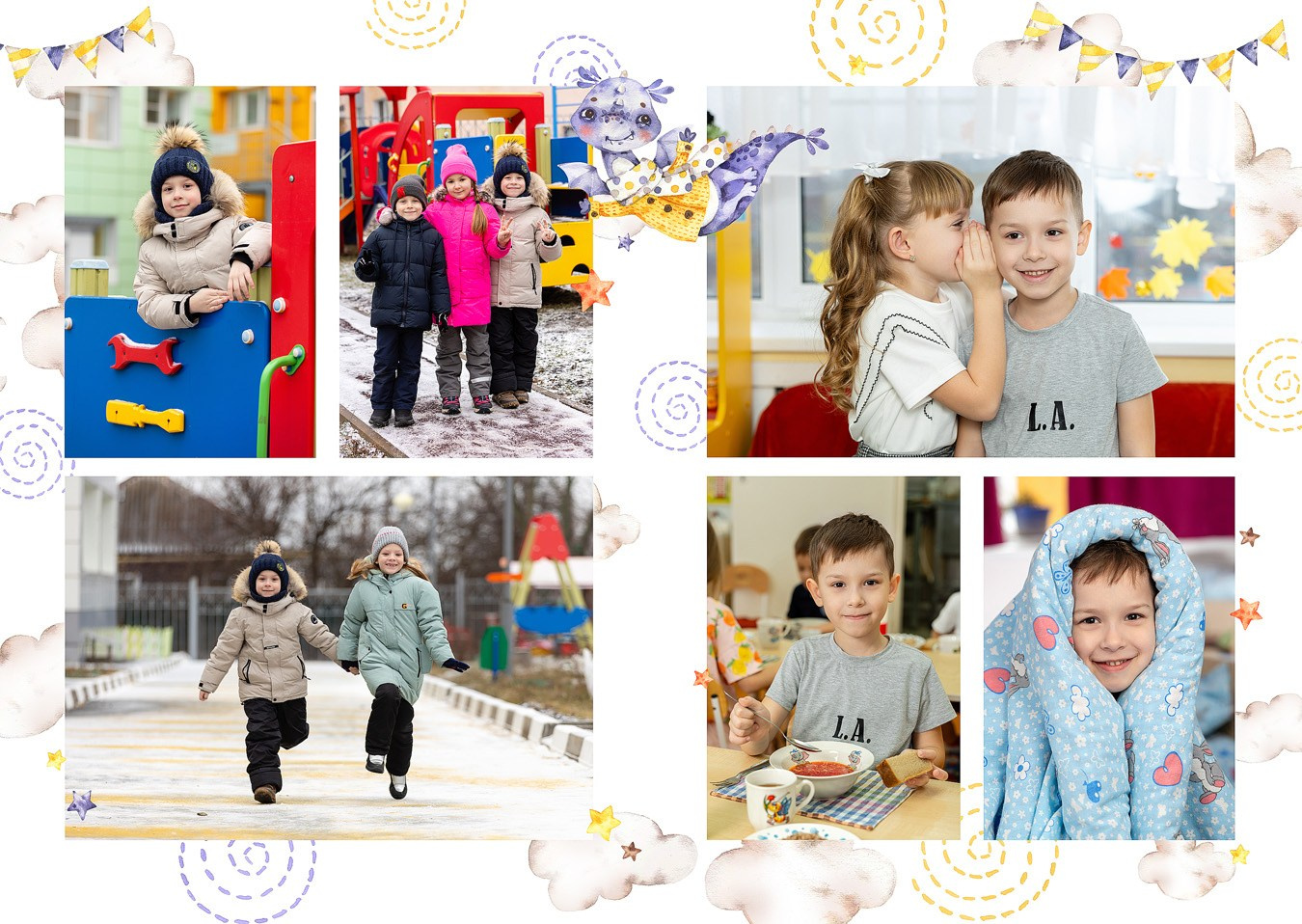 - 4-й разворот: фотографии с прогулки, обеда и сна