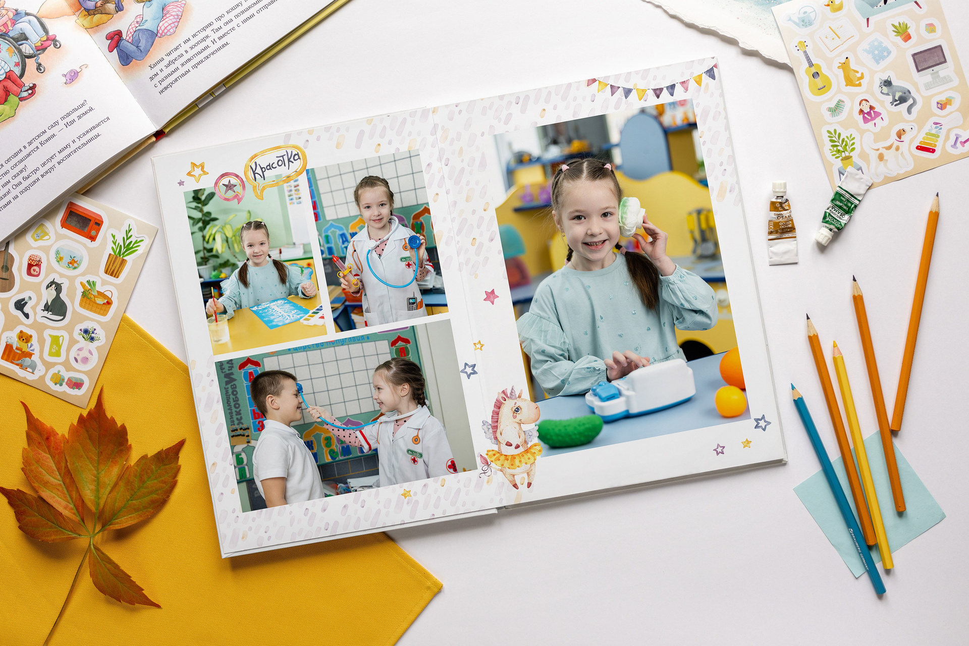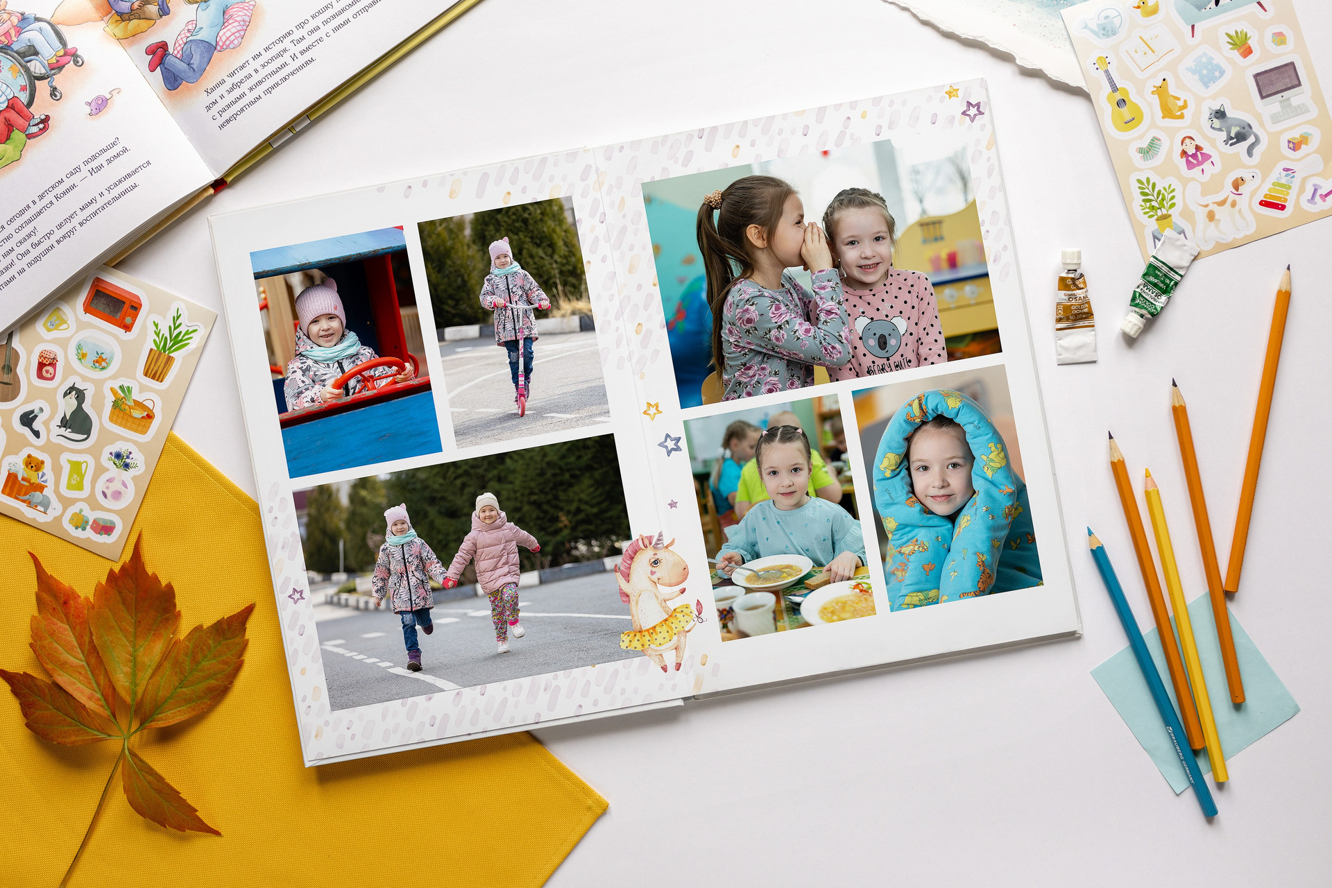 — Каждый персональный разворот (2 страницы с фотографиями вашего ребенка) +500 руб к стоимости альбома